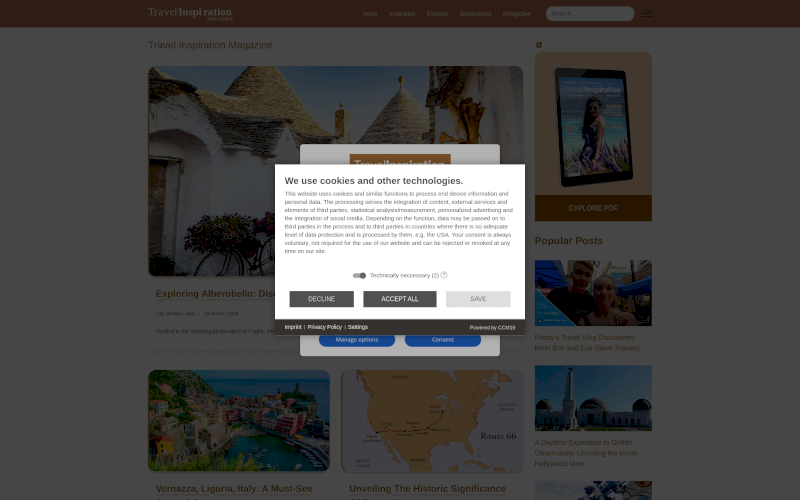 Entdecken Sie CCM19: Den maßgeschneiderten Cookie Consent Manager speziell für Reiseblogs. Maximieren Sie die Zustimmung Ihrer Besucher! Wählen Sie CCM19 für Datenschutz, der überzeugt: keine Datenübertragung ins Ausland, OnPremise/Cloud-Optionen & erstklassiger Support.