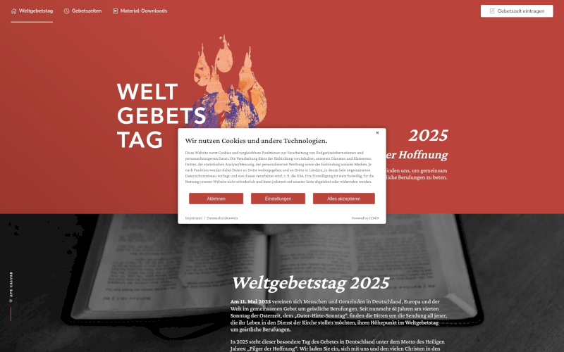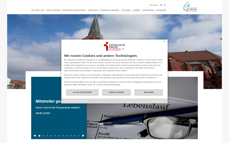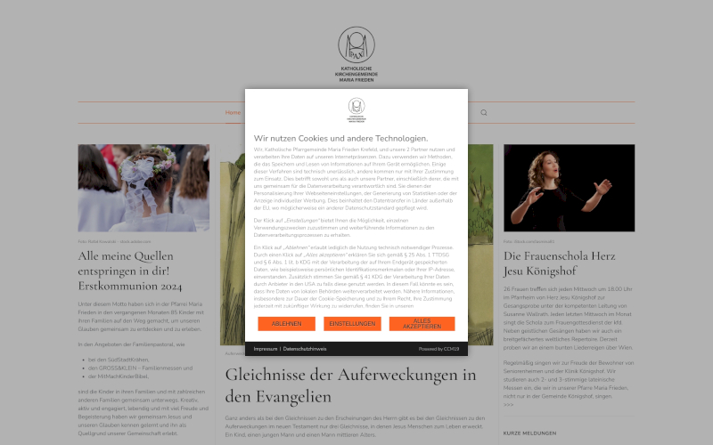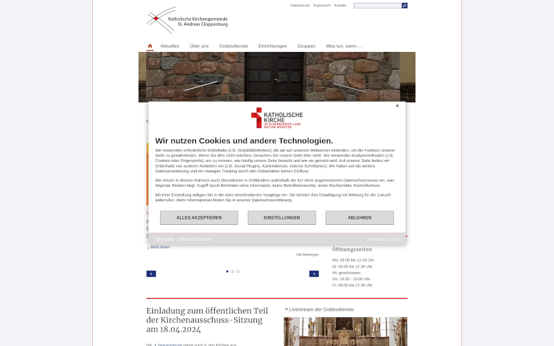 Entdecken Sie CCM19, den maßgeschneiderten Cookie Consent Manager für religiöse Organisationen. Optimiert Datenschutz & erhöht Zustimmungen! Wählen Sie zwischen OnPremise oder Cloud - sicher, ohne Datenübertragung ins Ausland. Speziell für religiöse Organisationen entwickelt. Support auf Deutsch!