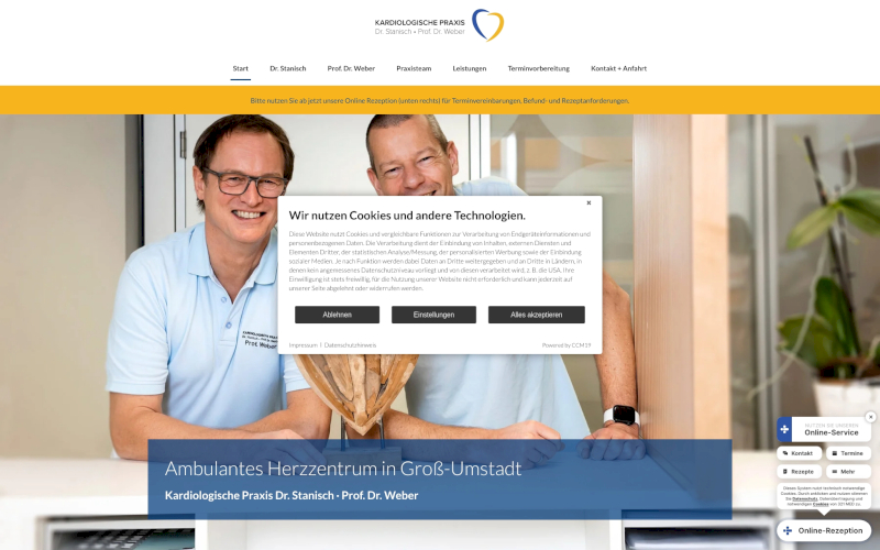 Das Herzstück von CCM19 für Ihre Ärztehäuser Webseite, Onlineshop oder sonstige Applikation - der Cookie Banner für Ärztehäuser. Mit diesem Banner realisieren Sie auf Ihrer Webseite die notwendige Zustimmung zum Setzen von diversen Cookies und zum ausführen von (Tracking)Skripten.