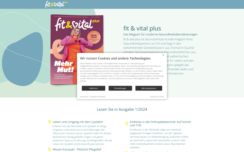 Entdecken Sie CCM19, den Cookie Consent Manager speziell für Sanitätshäuser. Optimieren Sie Datenschutz & Consents! CCM19: Datenschutz, der passt! Mit echtem Support & ohne Datenübertragung ins Ausland. Perfekt für Sanitätshäuser!