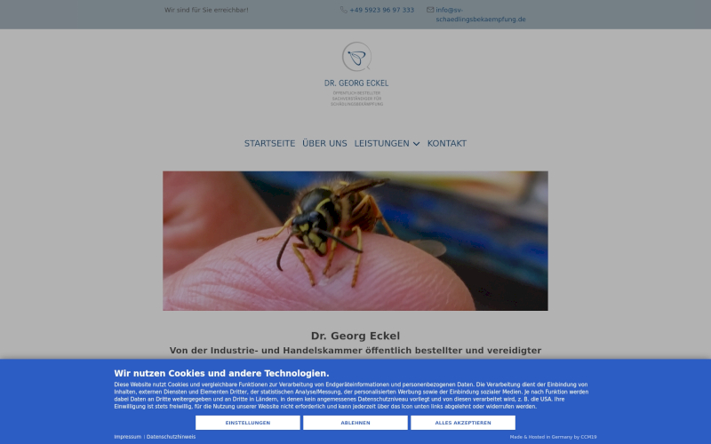 Entdecken Sie CCM19: Der maßgeschneiderte Cookie Consent Manager exklusiv für die Schädlingsbekämpfung-Branche. Ihre Datenschutzlösung wartet! Optimieren Sie Ihre Website mit CCM19, um mehr Zustimmungen zu gewinnen - sicher & effektiv, speziell entwickelt für Schädlingsbekämpfung. Steigern Sie jetzt Ihre Consents!
