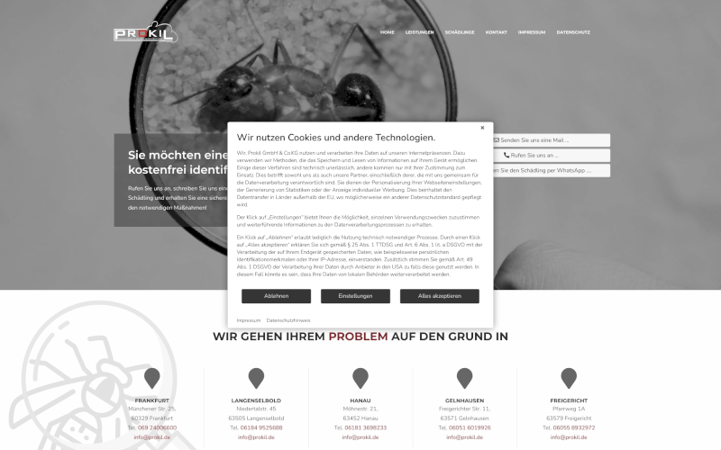 Das optimale Cookie Banner für Schädlingsbekämpfung