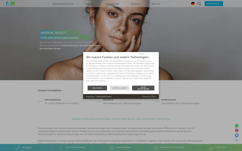 Entdecken Sie CCM19, den führenden Cookie Consent Manager speziell für Schönheitskliniken. Optimieren Sie jetzt Datenschutz! Erhalten Sie mehr Zustimmungen auf Ihrer Website mit dem CCM19 - designed für Schönheitskliniken. Deutsche Datenhaltung, kein TCF nötig!