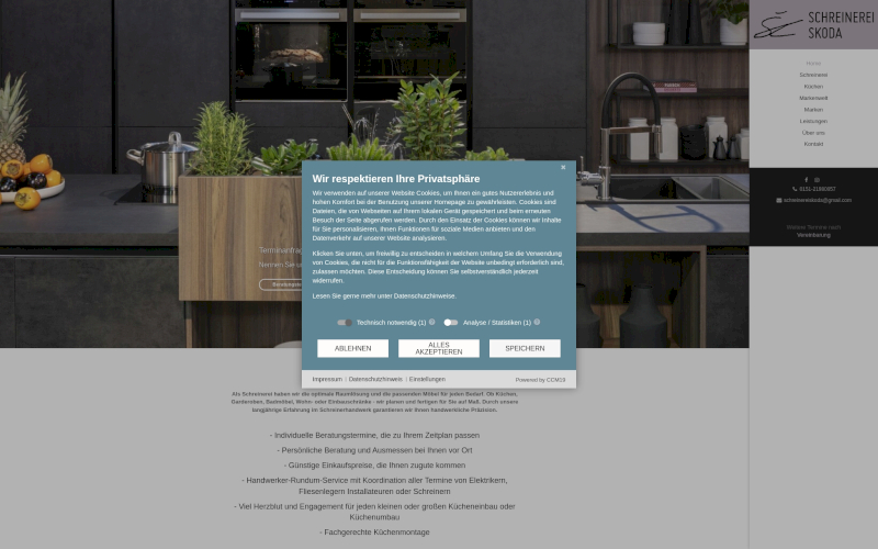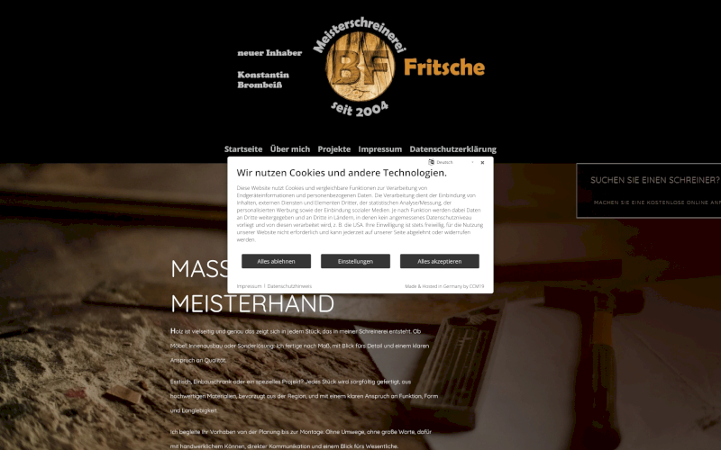 Entdecken Sie CCM19: Den führenden Cookie Consent Manager speziell für Schreinereien. Optimieren Sie Ihre Datenschutzstrategie jetzt!Maßgeschneidert für die Anforderungen Ihrer Branche, garantiert CCM19 effiziente Consent-Einholung und deutschen Datenschutz. Erfahren Sie mehr!