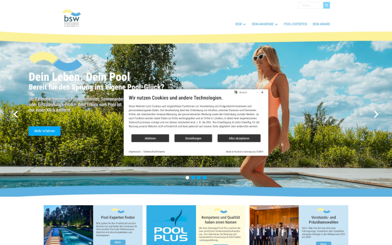 Datenschutz und Einwilligungsmanagement sind entscheidende Themen für Schwimmbadbetreiber. Mit dem Cookie Consent Manager (CCM19) bieten wir eine Lösung, die nicht nur DSGVO- und TDDDG-konform ist, sondern sich durch eine hohe Anpassungsfähigkeit und klare Kommunikation gegenüber den Endnutzern auszeichnet.