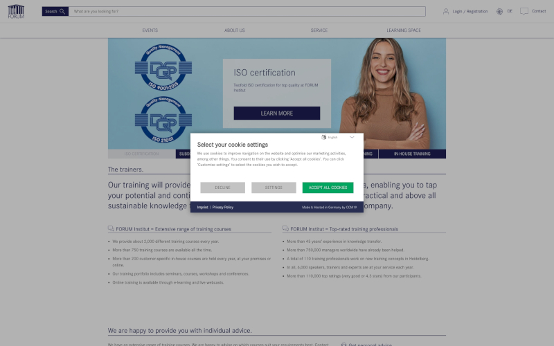 CCM19 stellt sicher, dass Ihre Webseite nicht nur DSGVO- und TDDDG-konform ist, sondern dass die CMP auch flexibel an neue Gesetzeslagen angepasst werden kann. Die Konformität mit der DSGVO und das TDDDG ist gerade für Seminare & Schulungen von großer Bedeutung, da hier oft sensible Daten verarbeitet werden. Mit CCM19 können Sie sich darauf verlassen, dass Ihre Cookie Consent Manager-Strategie jederzeit aktuellen Anforderungen entspricht.