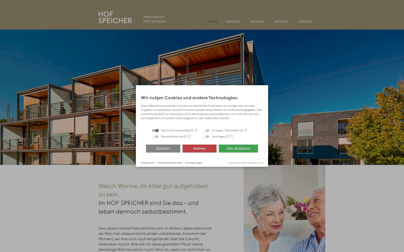 Das Herzstück von CCM19 für Ihre Seniorenheime Webseite, Onlineshop oder sonstige Applikation - der Cookie Banner für Seniorenheime. Mit diesem Banner realisieren Sie auf Ihrer Webseite die notwendige Zustimmung zum Setzen von diversen Cookies und zum ausführen von (Tracking)Skripten.