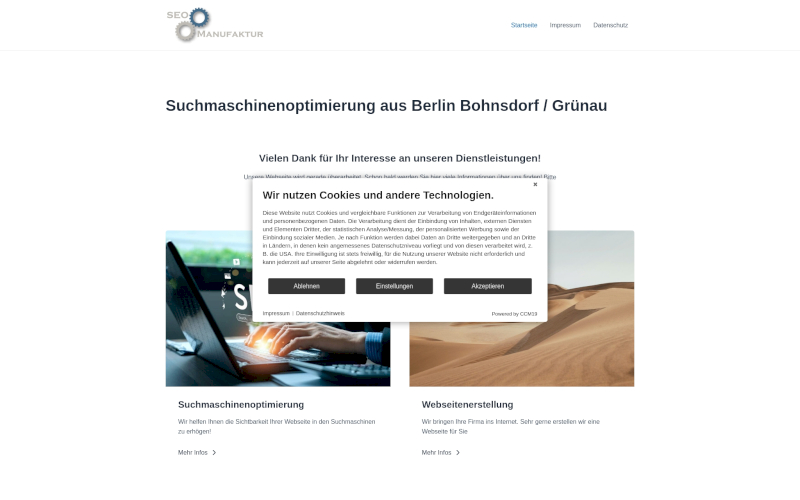 Entdecken Sie CCM19: Den maßgeschneiderten Cookie Consent Manager speziell für SEO-Agenturen. Optimieren Sie Datenschutz und erhöhen Sie User-Zustimmungen! Profitieren Sie von echtem, deutschsprachigen Support, ohne Datenübertragung ins Ausland. Perfekte Lösung, ob OnPremise oder Cloud. Bauen Sie auf unsere Erfahrung!