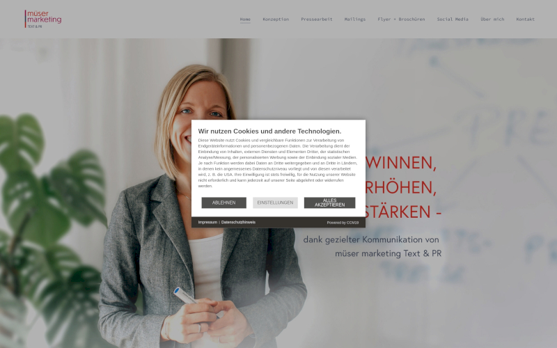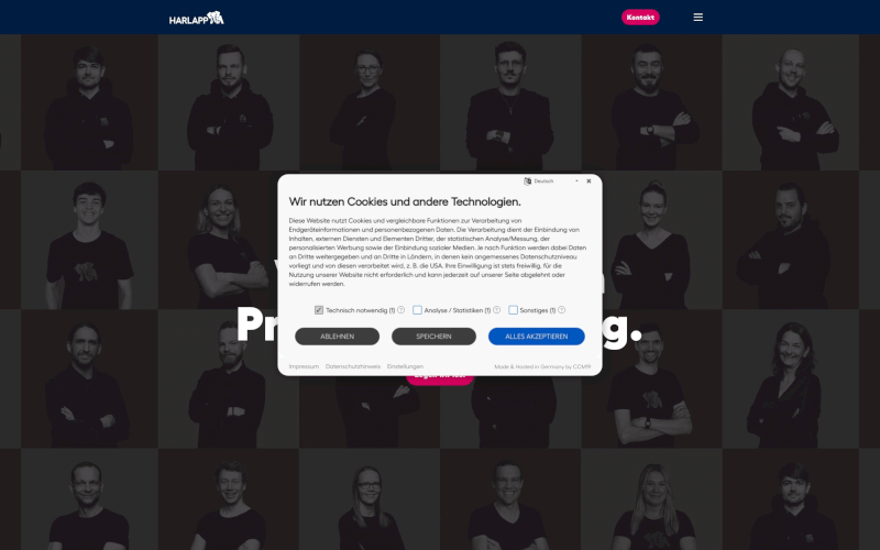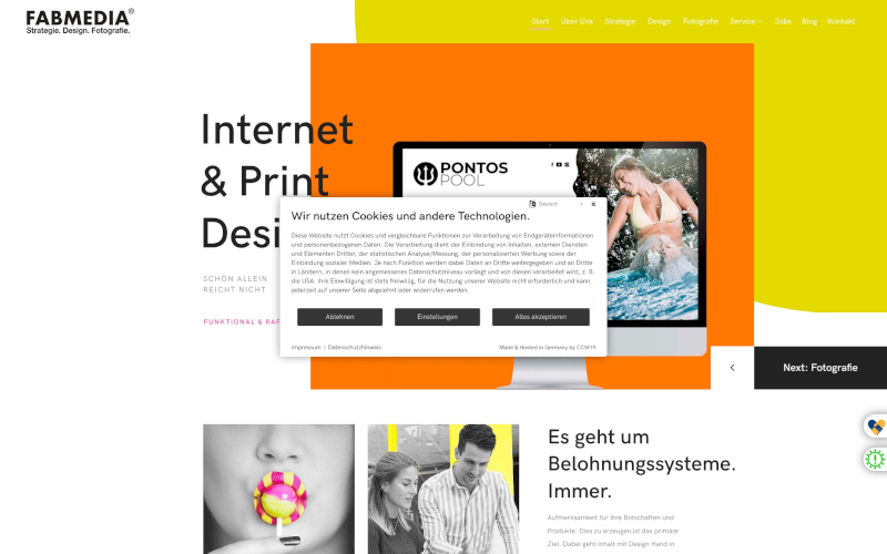 Das Herzstück von CCM19 für Ihre Social-Media-Agenturen Webseite, Onlineshop oder sonstige Applikation - der Cookie Banner für Social-Media-Agenturen. Mit diesem Banner realisieren Sie auf Ihrer Webseite die notwendige Zustimmung zum Setzen von diversen Cookies und zum ausführen von (Tracking)Skripten.