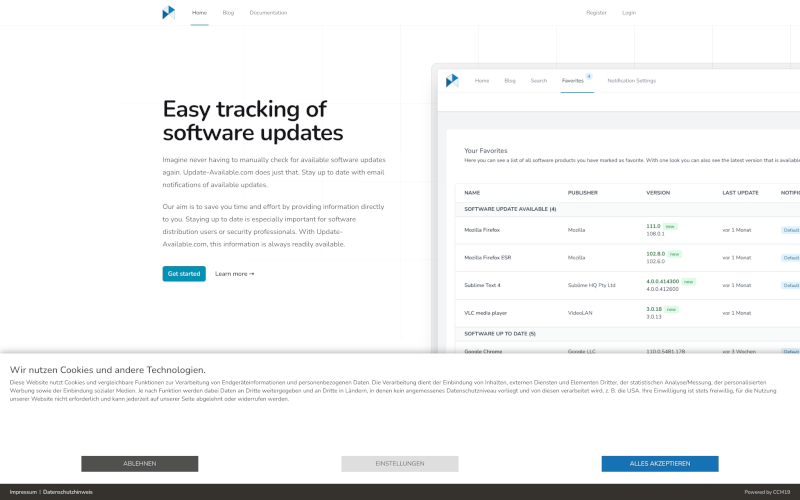 Entdecken Sie CCM19: Die top Cookie Consent Manager Lösung, speziell für Softwareunternehmen entwickelt. Deutschsprachiger Support inklusive!Optimieren Sie Ihre Datenschutzpraxis, erhöhen Sie die Zustimmungsraten - alles mit dem Fokus auf Softwareunternehmen. Wählen Sie zwischen OnPremise oder Cloud, ohne Datenübertragung ins Ausland.