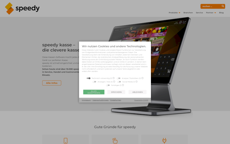 Das Herzstück von CCM19 für Ihre Softwareunternehmen Webseite, Onlineshop oder sonstige Applikation - der Cookie Banner für Softwareunternehmen. Mit diesem Banner realisieren Sie auf Ihrer Webseite die notwendige Zustimmung zum Setzen von diversen Cookies und zum ausführen von (Tracking)Skripten.