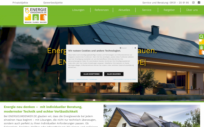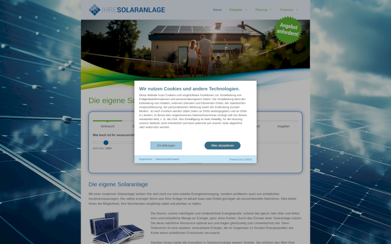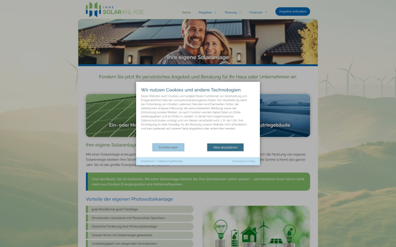 DSGVO und TDDDG sind für Webseitenbetreiber inzwischen allgegenwärtige Begriffe. CCM19 sorgt dabei nicht nur für eine Einhaltung dieser Vorschriften, sondern erleichtert es Solaranlagenbetreibern auch, ihre Seite DSGVO-konform zu halten, ohne dass dadurch die Benutzerfreundlichkeit leidet.