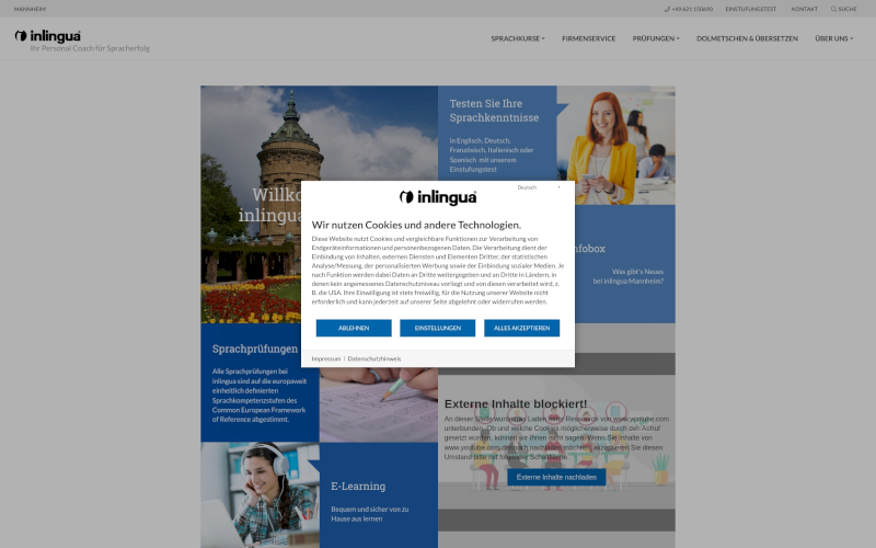 Das Herzstück von CCM19 für Ihre Sprachschulen Webseite, Onlineshop oder sonstige Applikation - der Cookie Banner für Sprachschulen. Mit diesem Banner realisieren Sie auf Ihrer Webseite die notwendige Zustimmung zum Setzen von diversen Cookies und zum ausführen von (Tracking)Skripten.