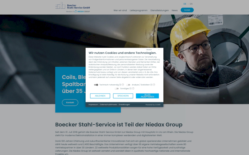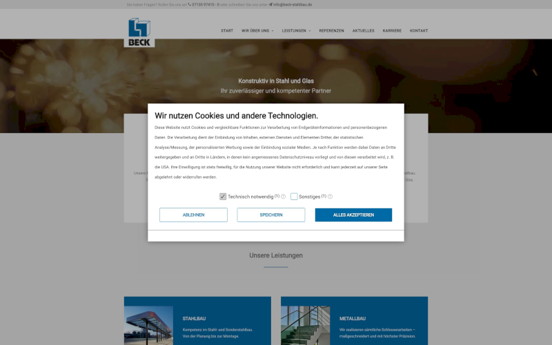 Cookie Consent Manager für Stahlbauunternehmen