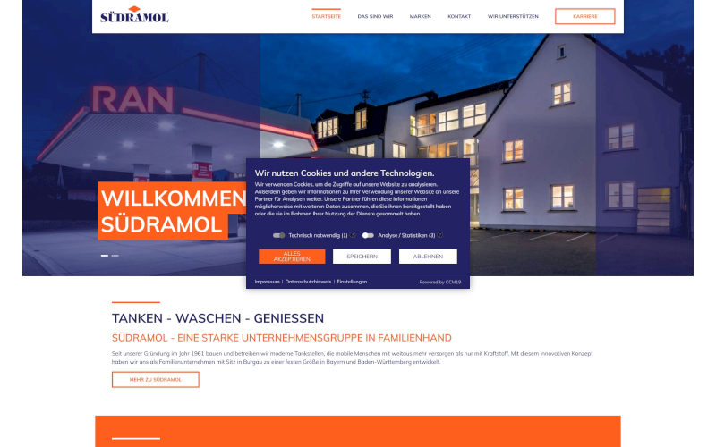Das Herzstück von CCM19 für Ihre Tankstellen Webseite, Onlineshop oder sonstige Applikation - der Cookie Banner für Tankstellen. Mit diesem Banner realisieren Sie auf Ihrer Webseite die notwendige Zustimmung zum Setzen von diversen Cookies und zum ausführen von (Tracking)Skripten.