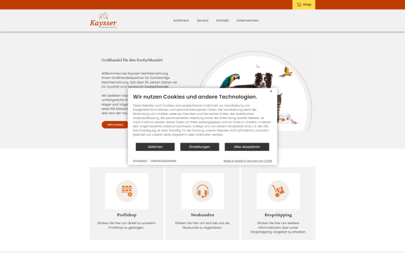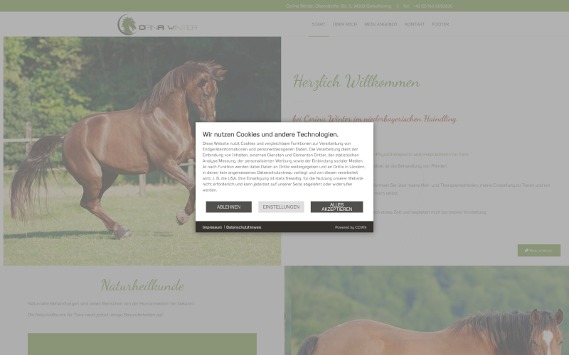Das Herzstück von CCM19 für Ihre Tierheilpraktiker Webseite, Onlineshop oder sonstige Applikation - der Cookie Banner für Tierheilpraktiker. Mit diesem Banner realisieren Sie auf Ihrer Webseite die notwendige Zustimmung zum Setzen von diversen Cookies und zum ausführen von (Tracking)Skripten.