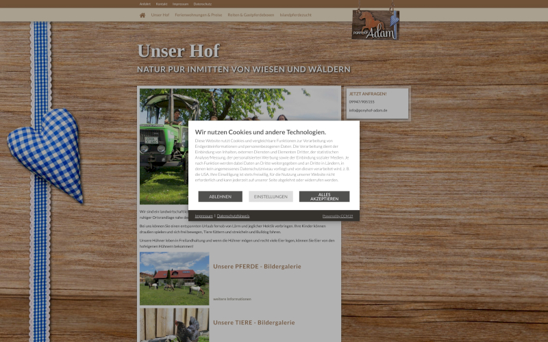 Tierpensionen stehen oft vor der Herausforderung, ihre Online-Präsenz DSGVO- und TDDDG-konform zu gestalten. Der Cookie Consent Manager (CCM19) bietet eine maßgeschneiderte Lösung, mit der Tierpensionen nicht nur rechtliche Sicherheit gewinnen, sondern auch das Vertrauen ihrer Nutzer stärken können. CCM19 bietet eine benutzerfreundliche Oberfläche und flexible Einstellungsmöglichkeiten, um den individuellen Bedürfnissen jeder Tierpension gerecht zu werden.