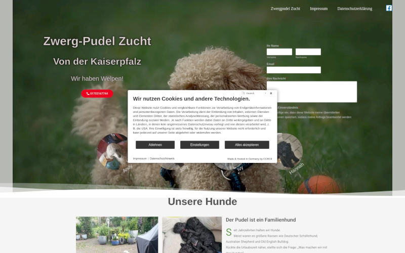 Entdecken Sie CCM19: den führenden Cookie Consent Manager speziell für Tierzüchter. Optimieren Sie jetzt Ihre Webseite! Erleben Sie mehr Zustimmung und sicheren Datenschutz mit CCM19, Ihrer OnPremise oder Cloud-Lösung ohne Datenübertragung ins Ausland.