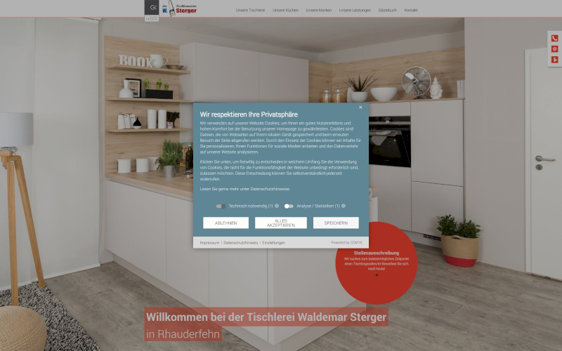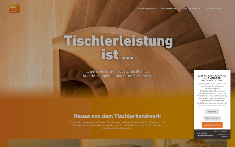 Entdecken Sie CCM19: Den Cookie Consent Manager, maßgeschneidert für Tischlereien. Datenschutz perfektioniert! Überzeugen Sie mehr Besucher zur Zustimmung - mit einem Spezialisten an Ihrer Seite. CCM19 garantiert Ihre Datensicherheit, ohne Kompromisse.