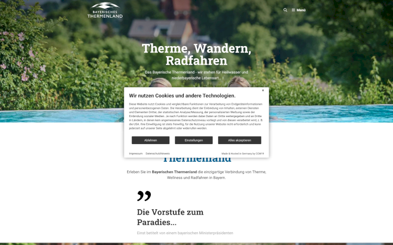 Entdecken Sie CCM19, den idealen Cookie Consent Manager speziell für Tourismus & Gastronomie! Erhöhen Sie die Zustimmungsraten jetzt! Wählen Sie Sicherheit und Effizienz mit CCM19: Entwickelt für Ihre Branche, ohne Datenübertragung ins Ausland. Perfekt für Tourismus & Gastronomie!
