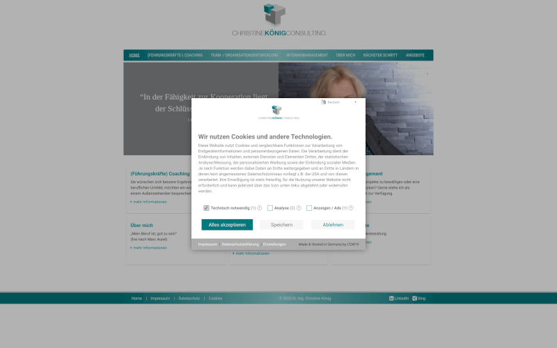 Cookie Banner für Unternehmensberatung