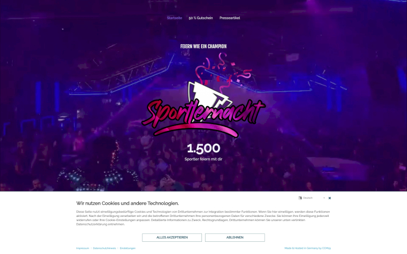 Finden Sie mit CCM19 den perfekten Cookie Consent Manager für Veranstaltungsorte; maßgeschneidert, sicher & effizient! Steigern Sie mit unserer Lösung speziell für Veranstaltungsorte die Zustimmungsrate Ihrer Website-Besucher - lokal und sicher.