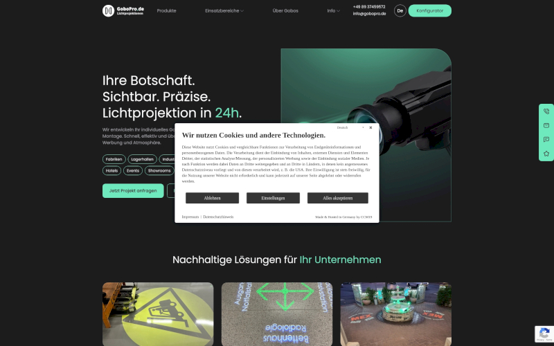 Entdecken Sie CCM19: Den maßgeschneiderten Cookie Consent Manager für Veranstaltungstechnik-Firmen. Optimieren Sie Ihre Zustimmungsrate! Sichere, datenschutzkonforme Lösung mit top Support - speziell entwickelt für Ihre Branche. Erhöhen Sie jetzt Ihre Consent-Raten!