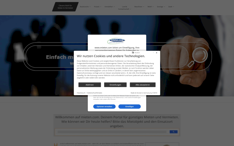 Finden Sie mit CCM19, den Cookie Consent Manager, gezielt für Vermietungsunternehmen entwickelt! Datenschutz optimiert & Nutzerzustimmung maximiert. Erleben Sie Datenschutz so sorgenfrei wie nie zuvor und profitieren Sie von unserem ausgezeichneten Support, genau für Ihre Branche maßgeschneidert. Entdecken Sie CCM19 jetzt!