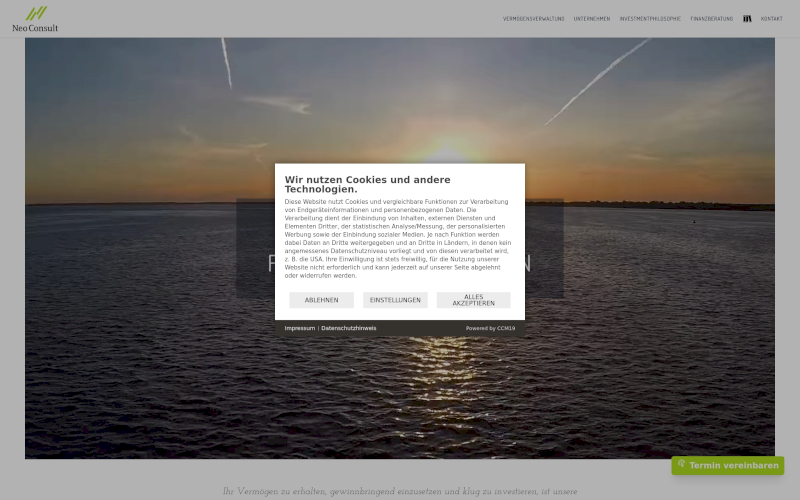 Das Herzstück von CCM19 für Ihre Vermögensverwaltungen Webseite, Onlineshop oder sonstige Applikation - der Cookie Banner für Vermögensverwaltungen. Mit diesem Banner realisieren Sie auf Ihrer Webseite die notwendige Zustimmung zum Setzen von diversen Cookies und zum ausführen von (Tracking)Skripten.
