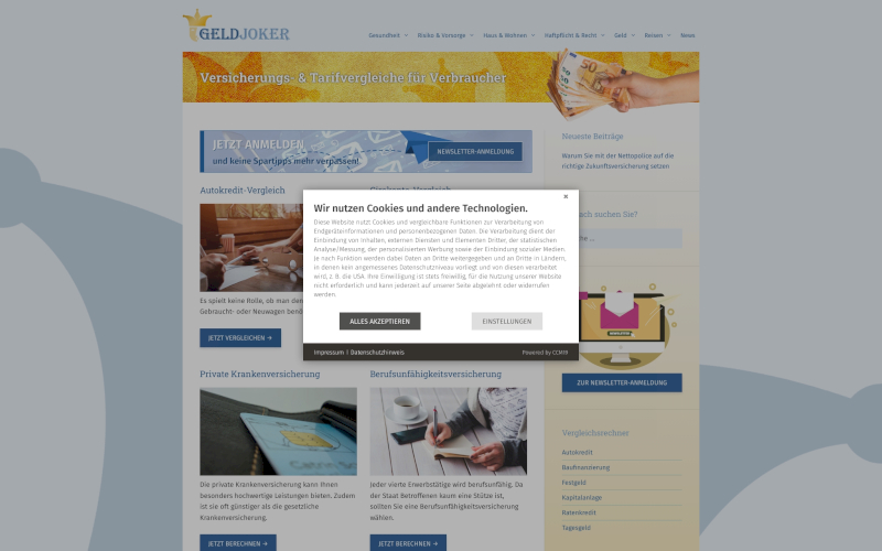 Finden Sie mit CCM19, dem Cookie Consent Manager speziell für Versicherer, optimale Datenschutzlösungen. Mehr Zustimmung, echter Support! Maßgeschneidert für die Versicherungsbranche, bietet CCM19 datenschutzkonforme, sichere und effiziente Consent-Verwaltung. Entscheiden Sie sich jetzt!