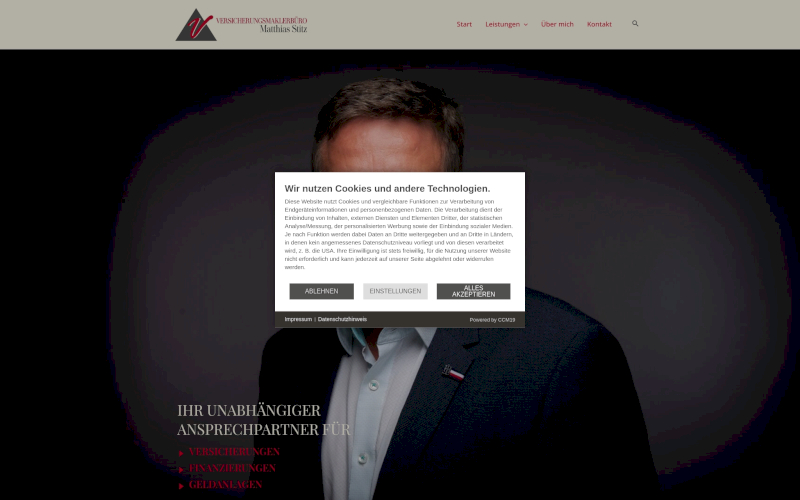 Entdecken Sie CCM19, den führenden Cookie Consent Manager, maßgeschneidert für Versicherungsmakler. Optimieren Sie Datenschutz und Nutzerzustimmung. Profitieren Sie von einer Lösung, die Sicherheit verspricht – entwickelt für Ihre Branche. CCM19: Keine Datenübertragung ins Ausland, OnPremise oder Cloud.