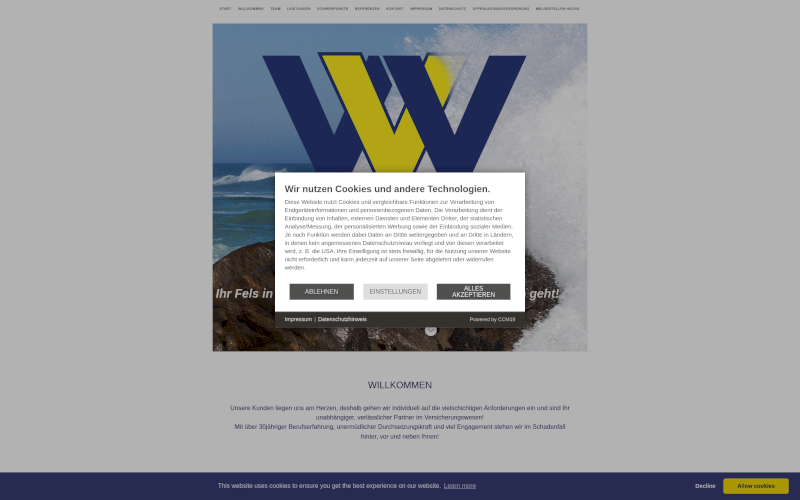 Das Herzstück von CCM19 für Ihre Versicherungsmakler Webseite, Onlineshop oder sonstige Applikation - der Cookie Banner für Versicherungsmakler. Mit diesem Banner realisieren Sie auf Ihrer Webseite die notwendige Zustimmung zum Setzen von diversen Cookies und zum ausführen von (Tracking)Skripten.