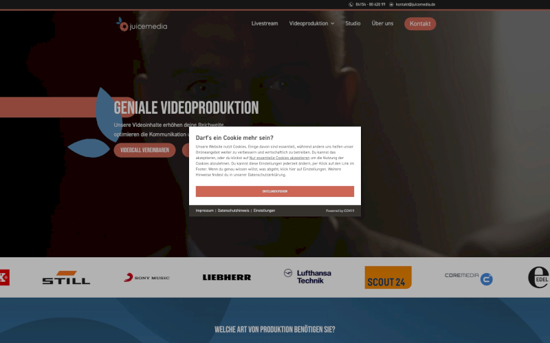 Entdecken Sie CCM19: Den maßgeschneiderten Cookie Consent Manager für Videoproduktionsfirmen. Optimieren Sie Ihre Zustimmungsrate jetzt! Profitieren Sie von einer lösungsorientierten, datenschutzfreundlichen Einbindung, exklusiv für Ihre Branche entwickelt. Steigern Sie die Compliance!