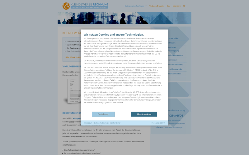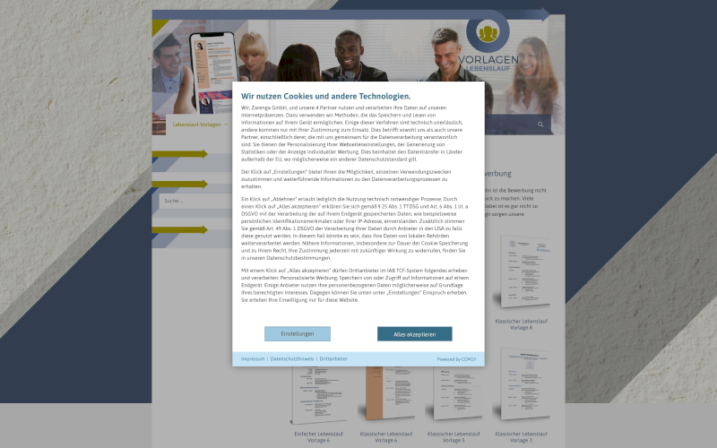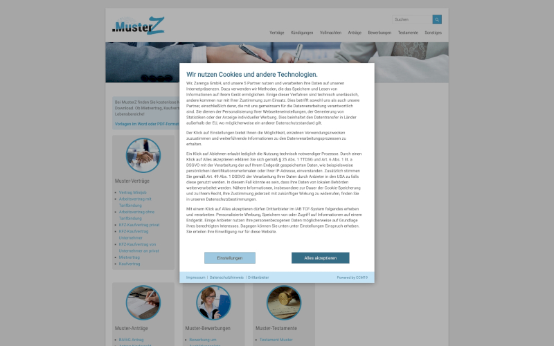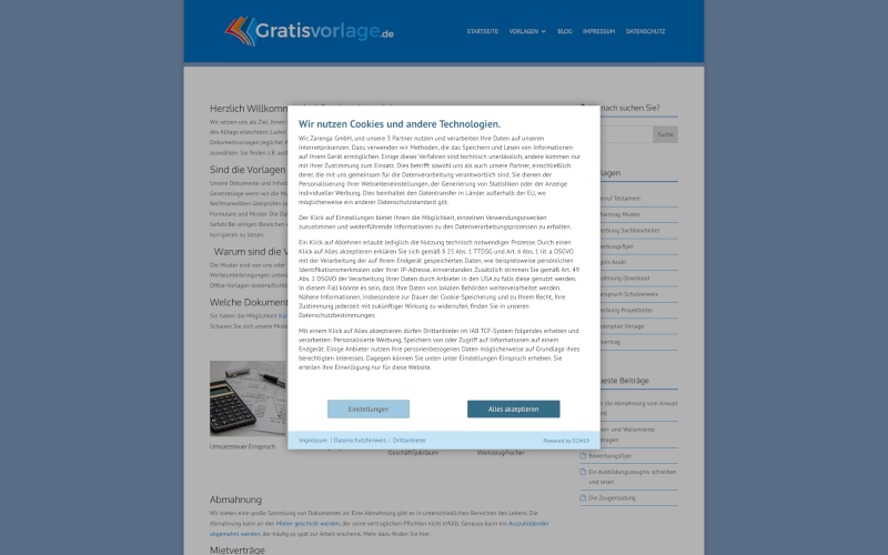 Entdecken Sie CCM19, den Cookie Consent Manager speziell für Vorlagen und Muster: Optimaler Datenschutz und höhere Zustimmung! Wählen Sie Deutschlands vertrauenswürdigen Cookie Consent Manager, entwickelt für Ihre Vorlagen und Muster-Branche. Sicher, effizient & anpassbar.