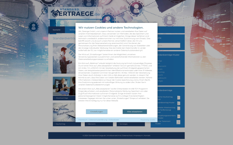 Das Herzstück von CCM19 für Ihre Vorlagen und Muster Webseite, Onlineshop oder sonstige Applikation - der Cookie Banner für Vorlagen und Muster. Mit diesem Banner realisieren Sie auf Ihrer Webseite die notwendige Zustimmung zum Setzen von diversen Cookies und zum ausführen von (Tracking)Skripten.