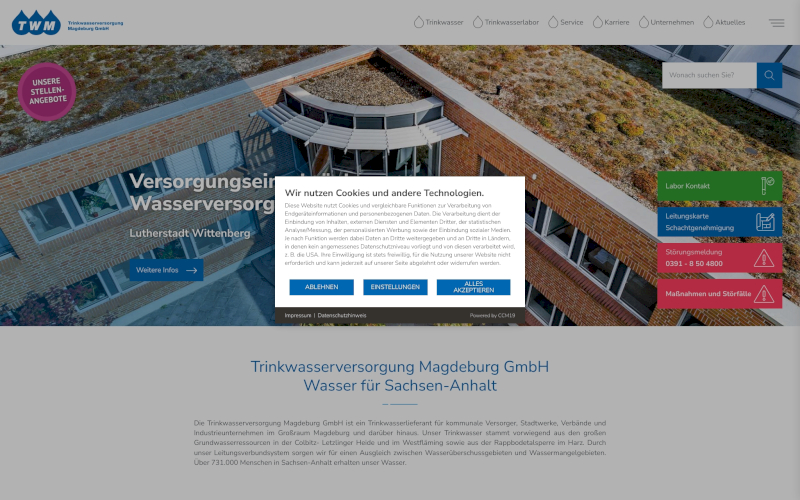 Finden Sie den idealen Cookie Consent Manager für Wasserversorger: CCM19, maßgeschneidert für Ihre Branche, mit Top-Zustimmungsraten! Optimieren Sie Ihre Datenschutzstrategie und erhöhen Sie die Consent-Raten, ohne dabei auf echten, deutschsprachigen Support zu verzichten. Wählen Sie zwischen OnPremise oder Cloud - sicher und standortgebunden.