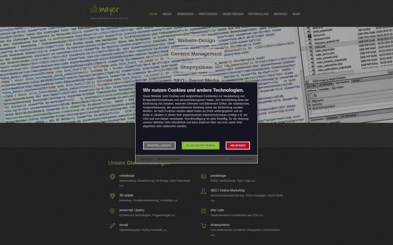 Das Herzstück von CCM19 für Ihre Webdesigner Webseite, Onlineshop oder sonstige Applikation - der Cookie Banner für Webdesigner. Mit diesem Banner realisieren Sie auf Ihrer Webseite die notwendige Zustimmung zum Setzen von diversen Cookies und zum ausführen von (Tracking)Skripten.
