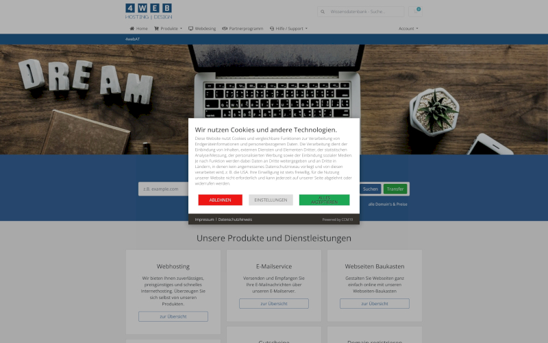 Cookie Banner für Webhosting-Unternehmen