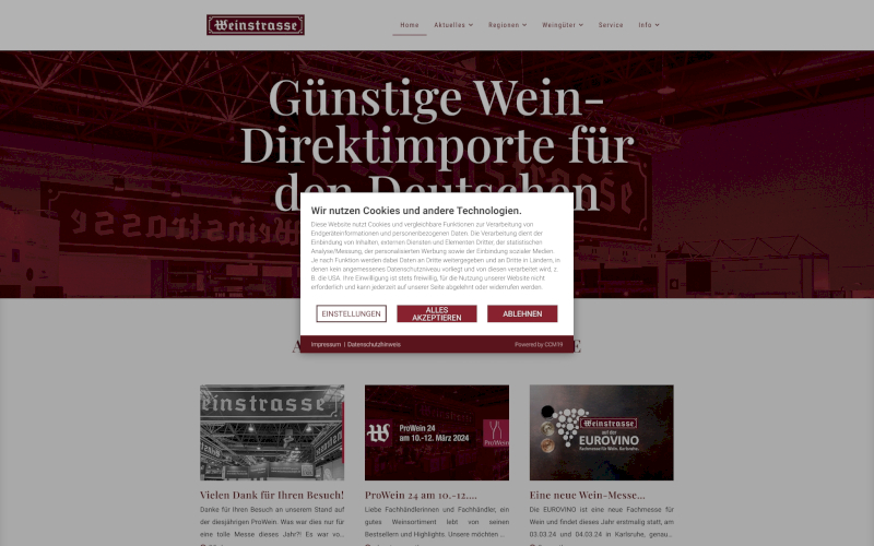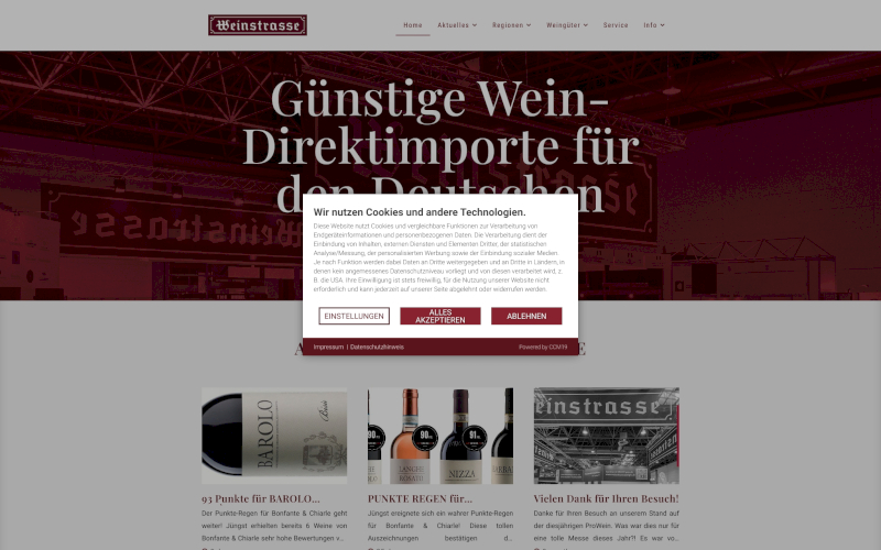 Entdecken Sie CCM19: Der maßgeschneiderte Cookie Consent Manager speziell für den Weinhandel. Optimieren Sie Ihre Zustimmungsraten! Erfahren Sie, wie CCM19 mit sicherer Datenhandhabung und spezifischer Branchenentwicklung Ihren Weinhandel voranbringt. Unabhängig, mit deutschem Support!