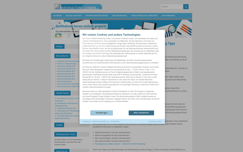 Das Herzstück von CCM19 für Ihre Weiterbildungsinstitute Webseite, Onlineshop oder sonstige Applikation - der Cookie Banner für Weiterbildungsinstitute. Mit diesem Banner realisieren Sie auf Ihrer Webseite die notwendige Zustimmung zum Setzen von diversen Cookies und zum ausführen von (Tracking)Skripten.