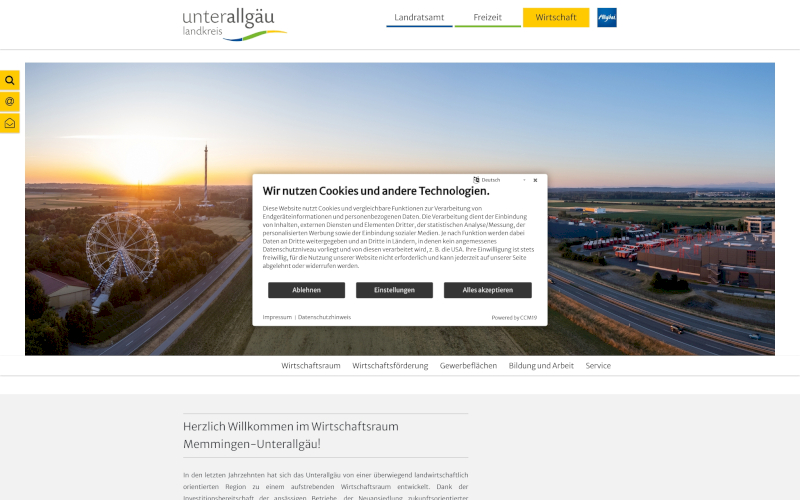 Das Herzstück von CCM19 für Ihre Wirtschaftsförderung Webseite, Onlineshop oder sonstige Applikation - der Cookie Banner für Wirtschaftsförderung. Mit diesem Banner realisieren Sie auf Ihrer Webseite die notwendige Zustimmung zum Setzen von diversen Cookies und zum ausführen von (Tracking)Skripten.