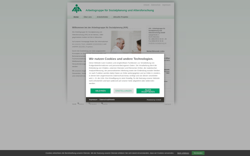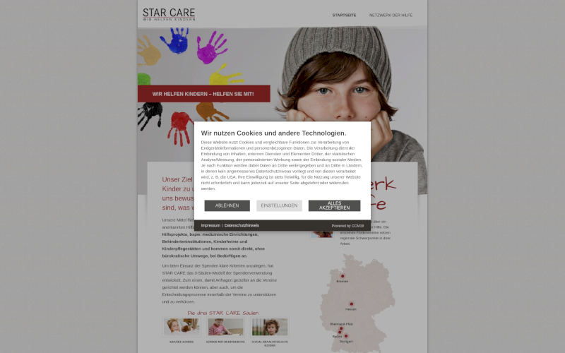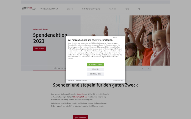 Das Herzstück von CCM19 für Ihre Wohlfahrtsverbände Webseite, Onlineshop oder sonstige Applikation - der Cookie Banner für Wohlfahrtsverbände. Mit diesem Banner realisieren Sie auf Ihrer Webseite die notwendige Zustimmung zum Setzen von diversen Cookies und zum ausführen von (Tracking)Skripten.