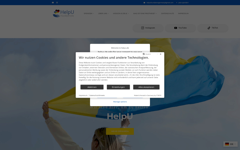 Das Herzstück von CCM19 für Ihre Wohltätigkeitsorganisationen Webseite, Onlineshop oder sonstige Applikation - der Cookie Banner für Wohltätigkeitsorganisationen. Mit diesem Banner realisieren Sie auf Ihrer Webseite die notwendige Zustimmung zum Setzen von diversen Cookies und zum ausführen von (Tracking)Skripten.