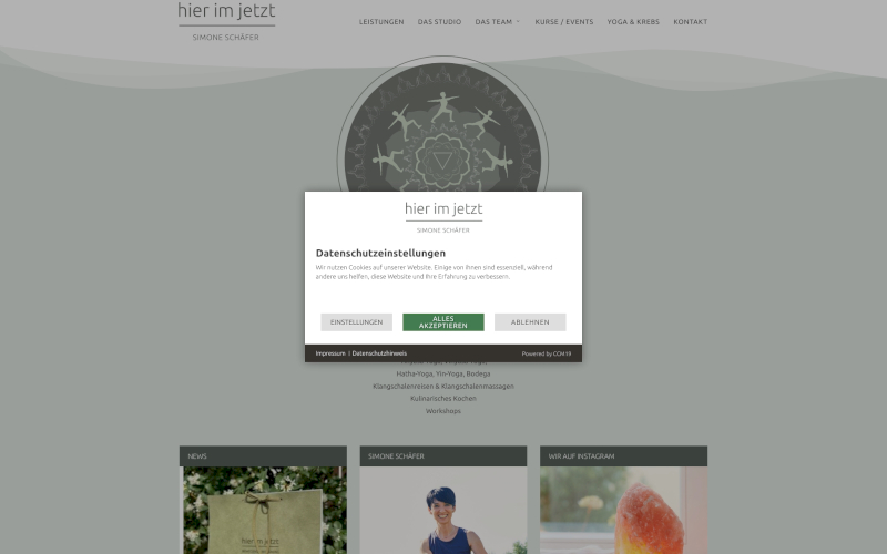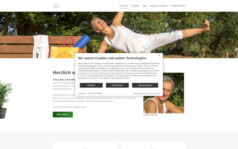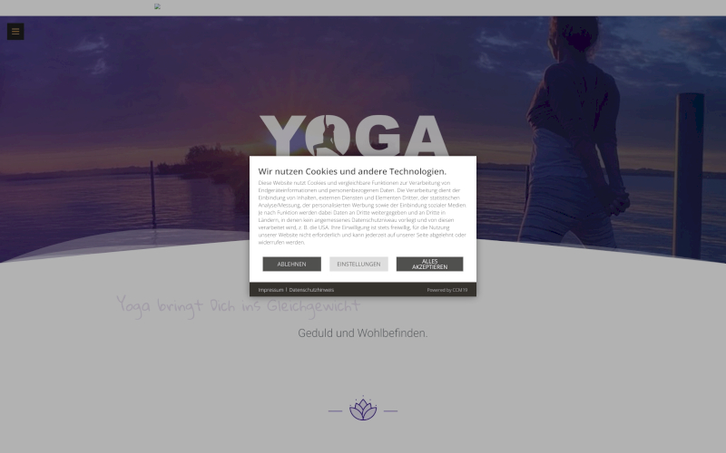 Steigern Sie mit CCM19, dem Cookie Consent Manager speziell für Yogastudios, Ihre Datenschutz-Compliance und Besucherzustimmungen. Entdecken Sie jetzt die maßgeschneiderte Lösung! Optimieren Sie mit unserem anpassbaren Cookie Consent Manager speziell für Yogastudios Ihre Website. Vertrauen Sie auf deutschen Datenschutz ohne Datenübertragung ins Ausland.