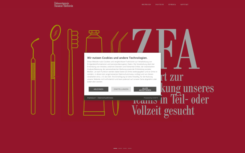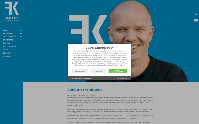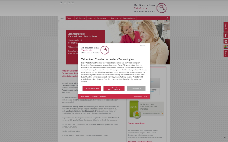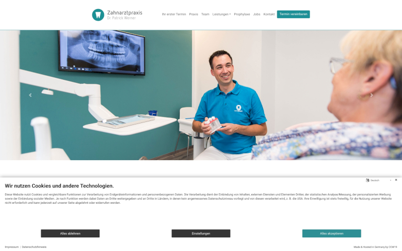 Entdecken Sie CCM19: Der Cookie Consent Manager, speziell für Zahnärzte entwickelt. Erhöhen Sie Ihre Zustimmungsrate jetzt! Genießen Sie optimierten Datenschutz und maximale Consents. CCM19- Ihre Wahl für Sicherheit und Effizienz, perfekt abgestimmt auf die Bedürfnisse von Zahnärzten.