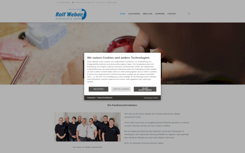 Entdecken Sie CCM19: Den Cookie Consent Manager, maßgeschneidert für zahntechnische Versorgungszentren. Optimieren Sie jetzt Datenschutz & Zustimmung! Vertrauen Sie auf eine Lösung, die ohne Datenübertragung ins Ausland auskommt & speziell für Ihre Branche entwickelt wurde. Deutschsprachiger Support inklusive!
