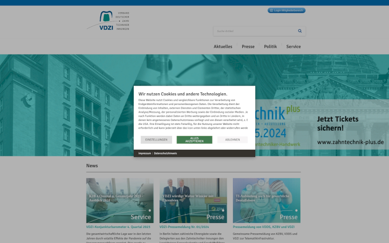 Cookie Consent Manager für Zahntechnische Versorgungszentren