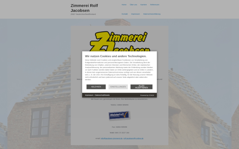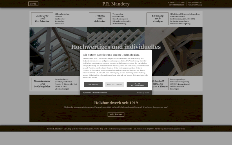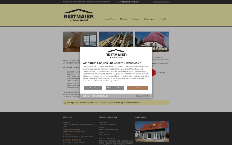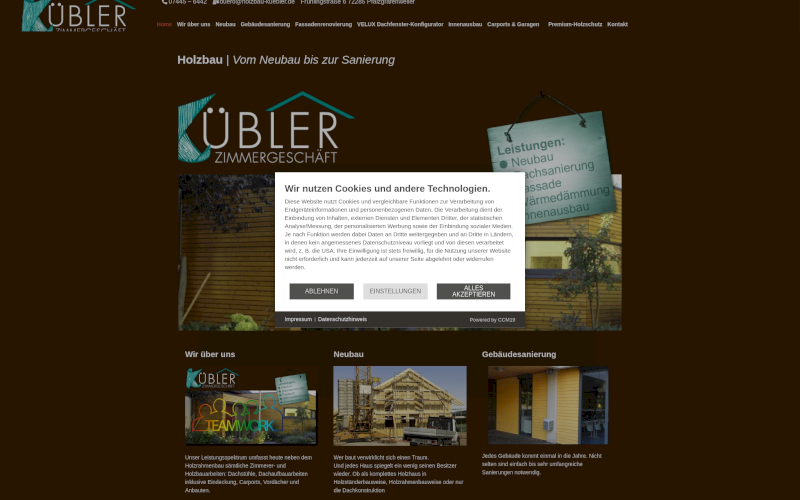 Entdecken Sie mit CCM19, den maßgeschneiderten Cookie Consent Manager für Zimmereien. Steigern Sie die Zustimmungsraten Ihrer Website! Verlassen Sie sich auf datenschutzkonforme Lösungen, entwickelt für Ihre Branche – ohne Datenübertragung ins Ausland. Perfekt für jede Zimmerei!