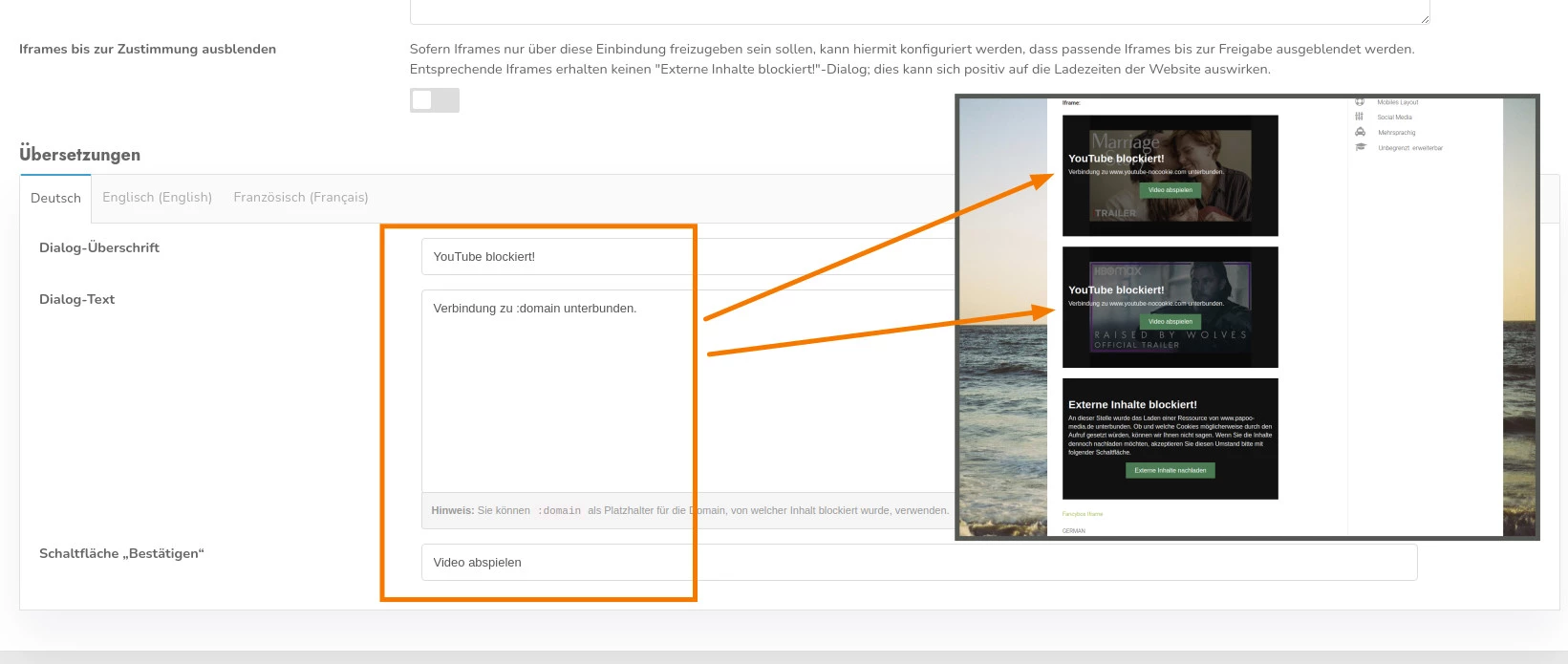 - NEW - IFrame blocker: Iframe domains are forgotten as soon as the cookie dialog is saved again without "Accept all"