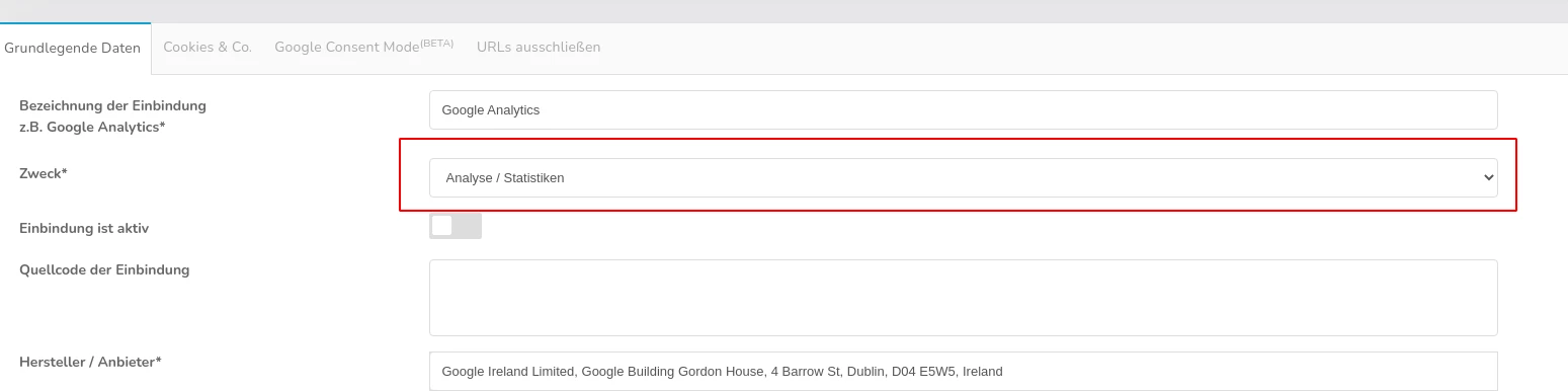En caso de duda, es mejor elegir una categoría distinta de "técnicamente necesario" para las cookies o integraciones. Con CCM19, puede definir fácilmente la categoría de cada integración y asegurarse así de que sólo se declaran como tales los elementos técnicamente necesarios: